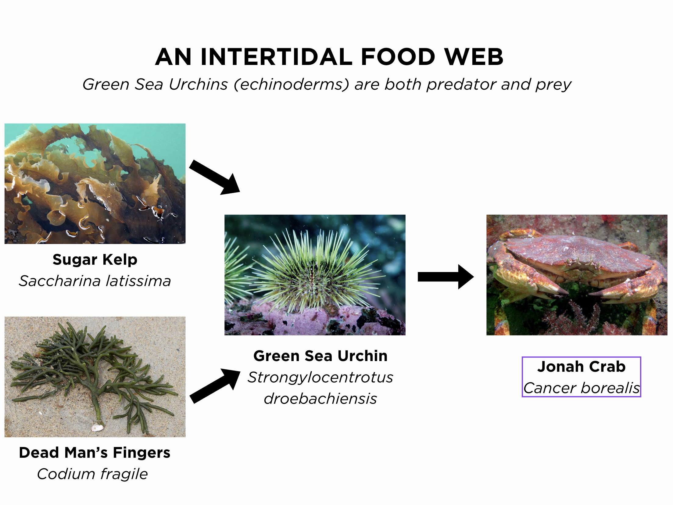 Nicole Peckham, a PhD student in the Kimbro Lab at Northeastern University’s Marine Science Center, studies predator-prey interactions. One of the questions she is exploring is how green sea urchin behavior is influenced by the presence of Jonah crabs, a common predator.